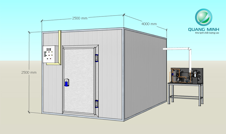Với kho lạnh có sức chứa 5 tấn, kích thước kho lạnh được Quang Minh gợi ý là 2.5m*4.0m*2.5m(H), tuy nhiên chúng ta có thể thay đổi kích thước cho phù hợp với mặt bằng của Quý khách.