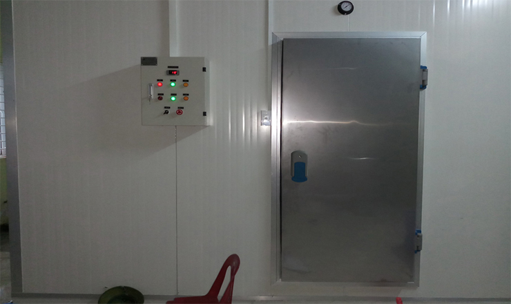 Kho đông lạnh 80 tấn thiết kế có phòng đệm xuất nhập hàng nhằm hạn chế thất thoát nhiệt và giảm thiểu hơi ẩm từ bên ngoài lọt vào trong kho đông lạnh nhằm tiết kiệm điện năng và tăng độ bền cho thiết bị của kho lạnh.
